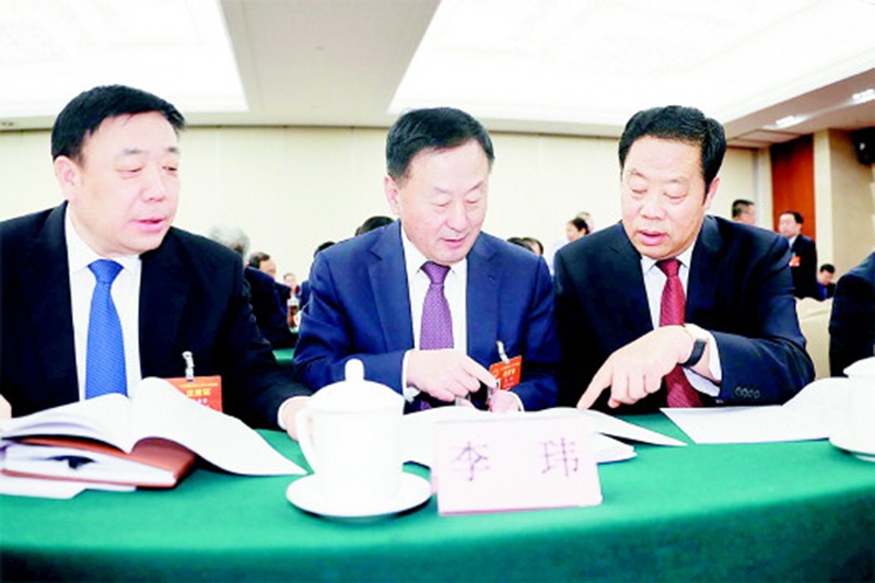3月12日,李希勇、李玮、李学海(自左至右)等山东代表团代表,一起审议最高人民法院工作报告和最高人民检察院工作报告。